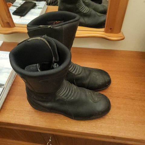 Alpinestars Faster-3 Rideknit motorsykkelstøvler i størrelse EU 44. Modellen er en ankelhøy sport-/streetstøvel med snøring og borrelåslukking øverst. Overdelen er i hovedsak svart med Rideknit-tekstilfelter kombinert med syntetisk materiale for forsterkning. Støvlene har forsterket hæl- og ankelparti samt ekstra beskyttelse over tærne. CE-merket i henhold til gjeldende standard for motorsykkelfottøy. Egnet til bruk på vei og til hverdagskjøring med motorsykkel eller scooter. Kjøpt nye i 2024