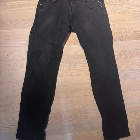 Svarte Dsquared jeans mangler den øverste knap til at knappe bukserne, men man kan selvfølgelig fikse det nemt ved at sy en ny en i.
