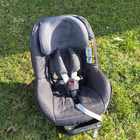 Bra bruktbilstol. Tre sikkerhetsfunksjoner: ISOFIX-støtte og sikkerhetsbelter. Han var ikke involvert i noen ulykke. Trekket er tatt av og vasket.
