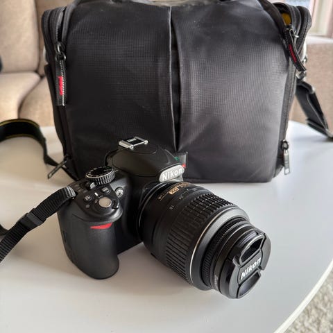 Nikon D3200 med 18-55 mm objektiv. Uten batteri