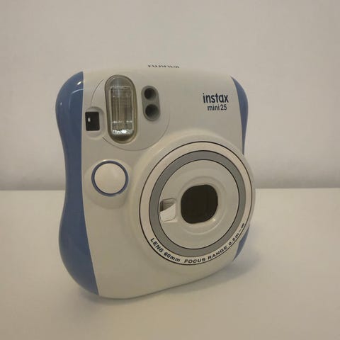 Polaroid 300 instantkamera i blå farge. Kameraet bruker instant-film som fremkalles direkte fra kameraet. Det har innebygd blits, optisk søker og enkel betjening med hjul for valg av lysinnstilling på toppen. På baksiden sitter filmrommet og en oversikt over eksponeringsinnstillingene. Kameraet drives av batterier (ikke synlig om de følger med) og har håndreim på siden for enklere håndtering. Egnet for brukere som ønsker direkte papirbilder tatt med analogt instantkamera.