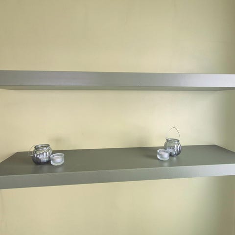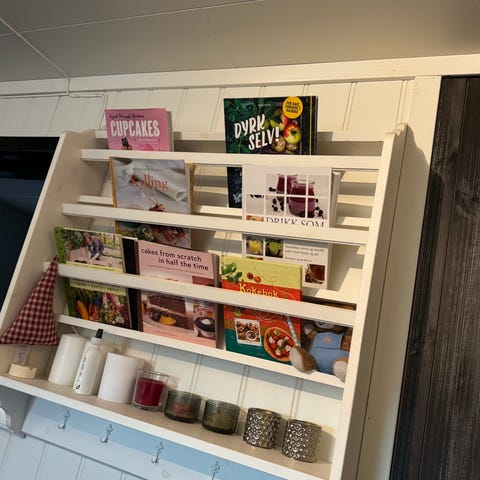 Nydelig, klassisk vegghylle i lys farge selges. Hyllen har vært brukt som kaffehylle og gir et varmt og koselig uttrykk på kjøkkenet.