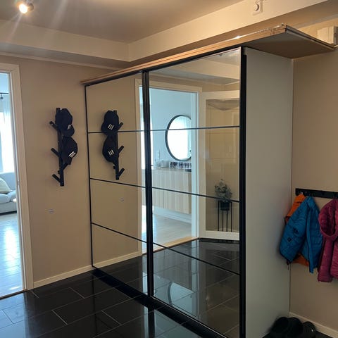 Komplett møblert og bruksklar garderobeskap må hentes i Florø. Frakt er ikke tilgjengelig.