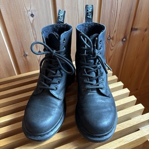 Jeg selger er par meget fint brukte Dr. Martens chelsea boots med fôr. De er størrelse 38, men ble dessverre litt for smale for min fot.