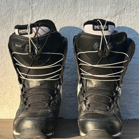 Burton Ruler str. US 9 / Eur 42 selges kr. 700/bud. Skoene er hele og fine, og litt stivere enn rimeligere støvler. Passer derfor litt tyngre eller mer erfarne kjørere best. Hurtigsnøring på både inner og yttersko.