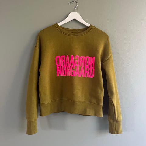 Isabel Marant genser for dame i størrelse 38. Genseren har et tie-dye mønster i svart og rosa med Isabel Marant-logo på brystet. Rund hals, lange ermer og ribbekanter nederst og ved ermelinningene.