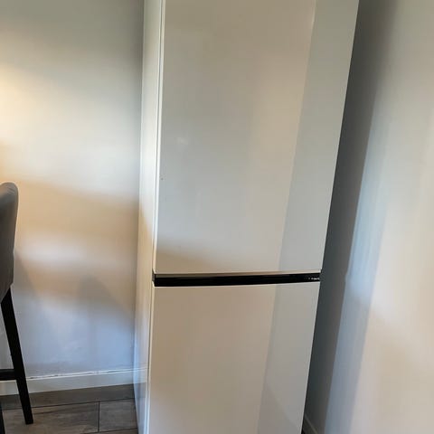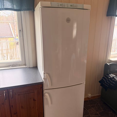 Dørhåndtak til frysedel er litt ødelagt, men ikke noe problem å bruke (er tapet).