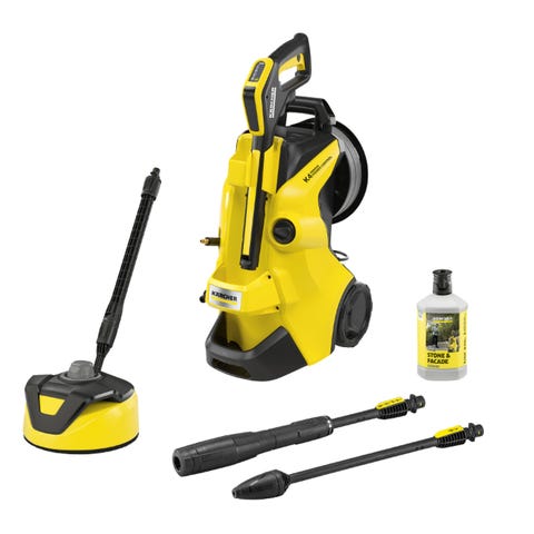 Kärcher HD Classic høytrykkspyler. Modellen er en stående, mobil høytrykkspyler med store hjul og håndtak for enkel transport. Den har integrert holder for høytrykkspistol og slange, samt oppbevaringsplass for tilbehør. Egnet til rengjøring av uteområder, kjøretøy, maskiner og andre overflater som tåler høytrykksspyling. Strømdrevet modell med tilkobling for vannslange.