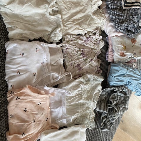 Selger en fin og luftig sommerpakke til jente i størrelse 62 – perfekt for varme dager.
