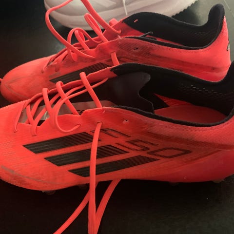 Adidas F30 TRX AG fotballsko i størrelse 41. Modellen er beregnet for fotball på kunstgress (AG – Artificial Grass) med faste knotter under sålen for godt grep på underlaget. Skoene er i en oransje farge med hvite Adidas-striper og snøring foran. Overdelen er i syntetisk materiale som er lett å holde rent. Passer til fotballspillere som trenger lette sko til bruk på kunstgressbaner.