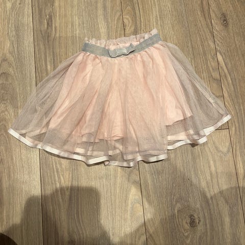 Et pomp de lux skjørt i rosa tyll (str 104) og et Lindex skjørt med glitter (98/104)