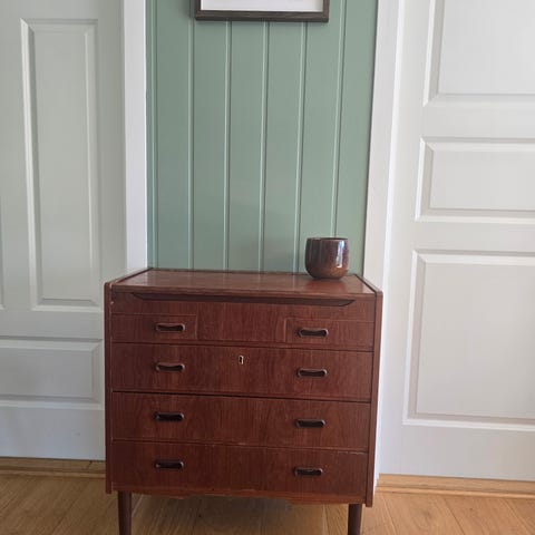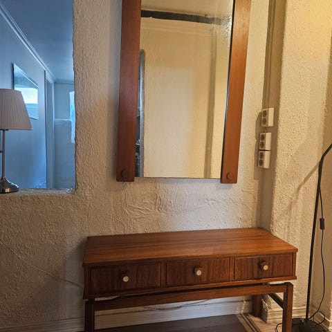 Retro teak kommode og veggspeil fra IKEA