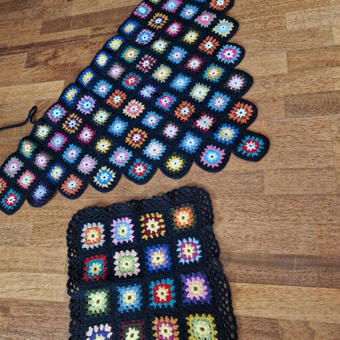 Håndlaget heklet pledd flerfarget