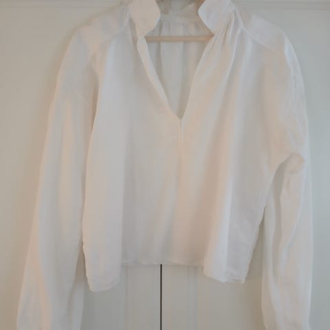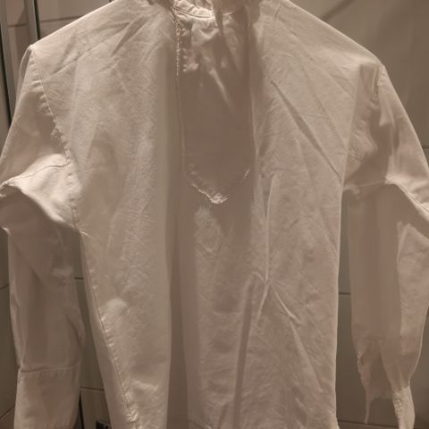 Fin brodert bunadskjorte i lin til sunnmørsbunad selges. En flekk bak på eine arma.