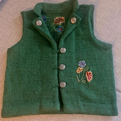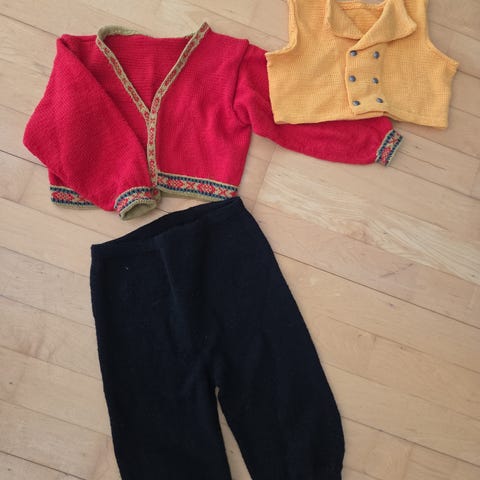 Selger en nettopp ferdig strikket og brodert guttebunad Nordland. Brukt org garn og ord mønster. Nordlands knapper og tvebond Bård på buksen