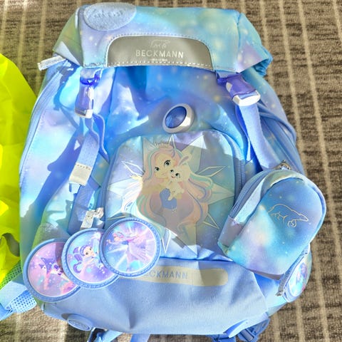 Meget pen sekk, alt er helt og pent og følger med, også regntrekket og mini-sekk med buttons.