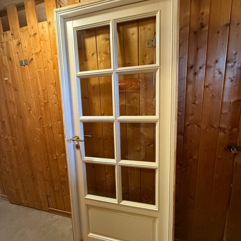 Innerdør med glass, karm og håndtak 72,5x204cm