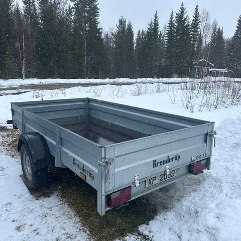 2010 Brian James biltransport tilhenger. Tilhengeren er i god stand. Den har stått parkert inne på brannstasjonen i mange år. Den har nye hjullager, bremseklosser og nye ledninger. Så den er klar til bruk.