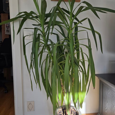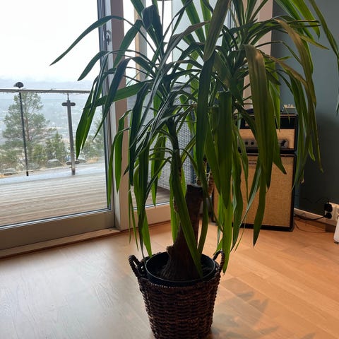 Stor yucca palme i plastpotte 24 cm. Har hatt den i mange år og den har vokst veldig mye. Ca 130 cm høy. Egner seg som dekorativ grønnplante i hjem eller kontor. Må hentes i Kværnerbyen.