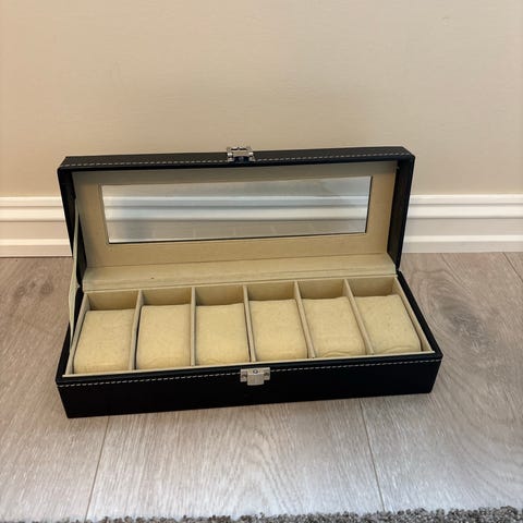 Selger en pent brukt klokkeboks. Rommer 12 klokker.