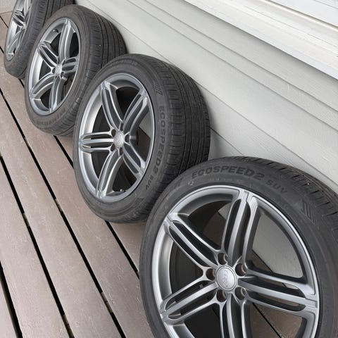 Åpen for bud ved rask handel! Komplette hjul med lettmetallfelger og sommerdekk 235 x45.