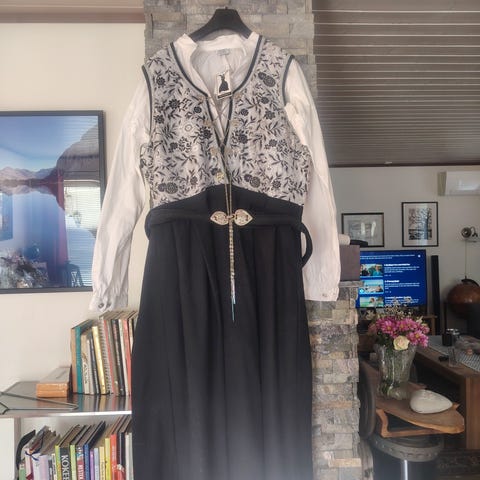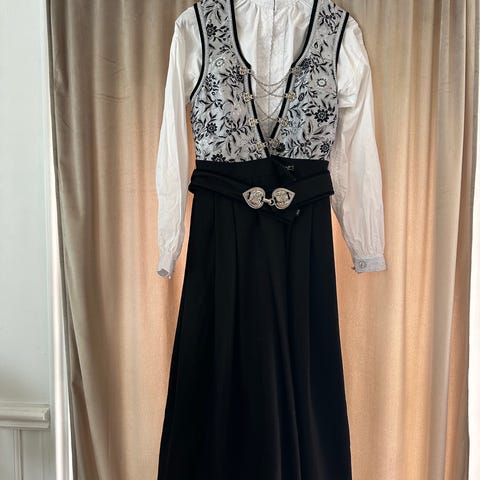 Veldig pent brukt Sonja amalie festdrakt selges med skjorte, belte og sølvlenke . Str 34-36 S Kun brukt 2 ganger. Dyr og røykfri hus kan sendes