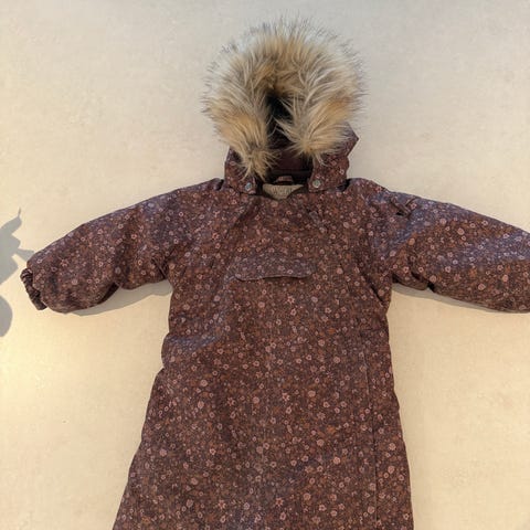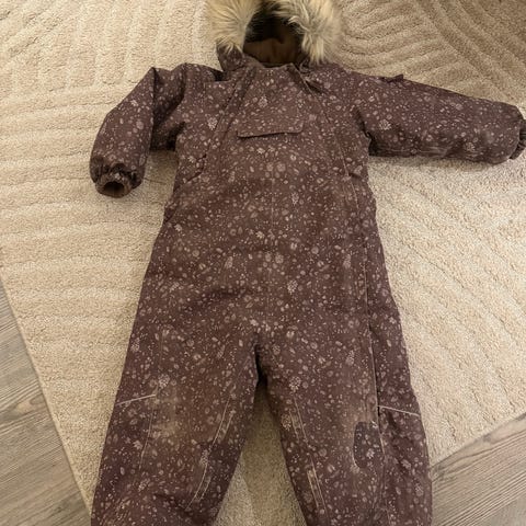Wheat vinterdress til barn i størrelse 104. brun med blomstermønster og er lappet på innsiden av beina, det er slitasje på dressen, men ingen hull. denne fungerer utmerket som ekstra dress en sesong til! 🤍