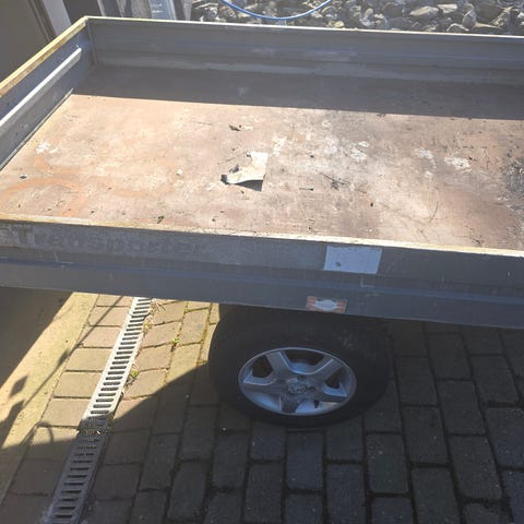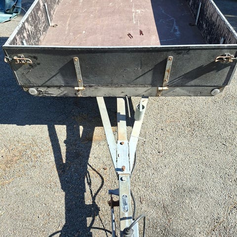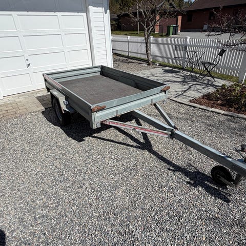 Tilhenger i grei stand, alt av lys og reflekser er nytt, bra dekk, bremser er fjernet, kassemål er 149x206cm