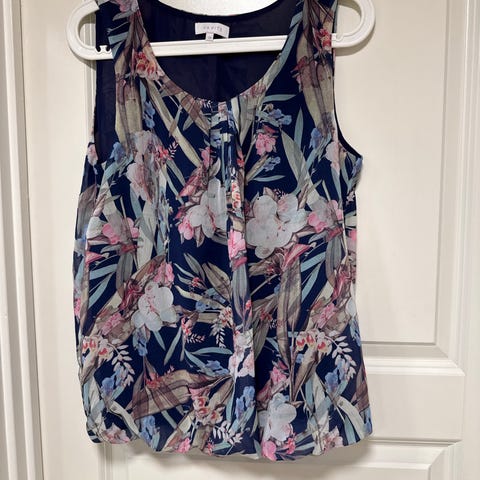 Som Ny Marie Philippe hverdagskjole i lin, størrelse 42. Kjolen er ermeløs med V-utringning og har et flerfarget blomstermønster. Passer som enkel hverdagskjole eller til uformelle anledninger. Materiale: lin.