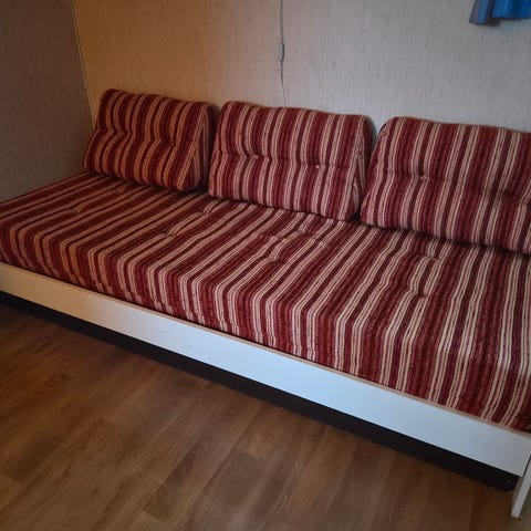 Kjøkken benk med nytt trekk og 5 cm skummadrass. Oppbevaring under sete.