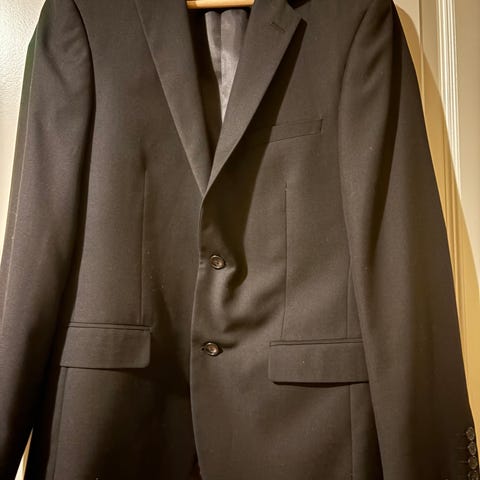 Dressmann Slim Fit dressjakke for herre i størrelse 44. Jakken er svart og laget i polyester. Modellen er merket som «short» og har en smal passform (slim fit). Klassisk dressjakke som kan brukes til dressbukse eller andre penbukser ved formelle og semi-formelle anledninger.