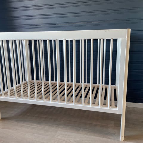 Selger denne Gulliver sprinkelsengem fra IKEA. Har vært pent brukt til to barn. Bunnen i sprinkelsenga kan monteres i to ulike høyder. Den ene siden på sprinkelsengen kan tas av når barnet er stort nok til å klatre inn/ut av sengen. Bunnen i sprinkelsenga har god luftsirkulasjon og gir barnet et behagelig sovemiljø. Laget av solide materiale. Noen få bruksmerker. Mål er 60x120cm. Nypris er 1495,-