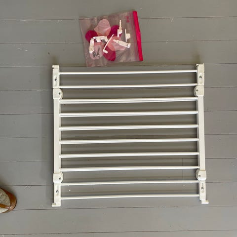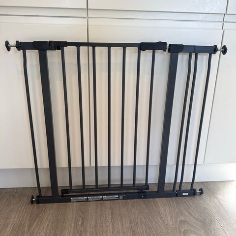 Hard Head Children’s Gate grind med forlengelse. Grind for barnesikring av åpninger, for eksempel dører eller trapper. Hovedgrinden har justerbar bredde 72,5–85,5 cm. Pakken inkluderer også en 4 forlengelse (Gate Extension) for å øke bredden ved behov. Farge hvit. Egnet til innendørs bruk der man ønsker å sperre av områder for barn.