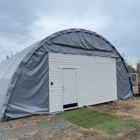 Lekkert grønt og praktisk lagertelt. Enkelt å montere. Som nytt, kun brukt i 10 mnd.