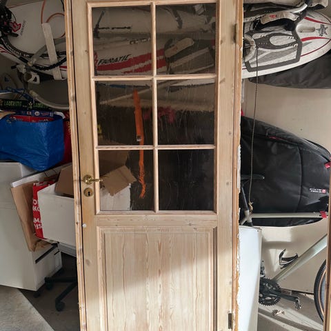 Selger en solid og unik innerdør med spesielt glass og sprosser. Bredde 100cm og høyde 200cm 10x20