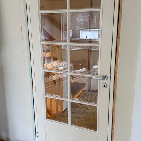 Innerdør i tre med sprosser, glass