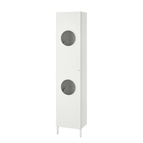Selger et baderomshøyskap fra IKEA. Har satt på andre bein og bytta knott på det, sånn at det kan stå av seg selv. Beina er justerbare. Skapet er nett og lite ruvende.