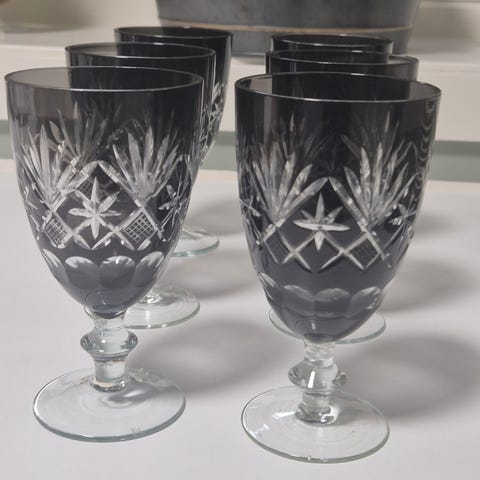 Høyden på disse er 13 cm.De har ingen skader.Glassene kan hentes hos meg i Oslo eller jeg kan sende dem og kjøper betaler porto.