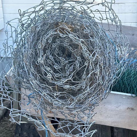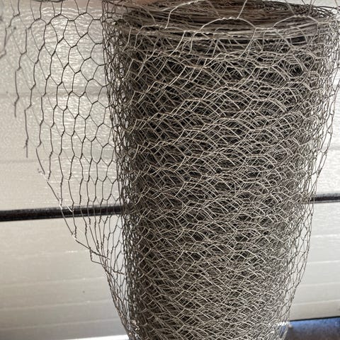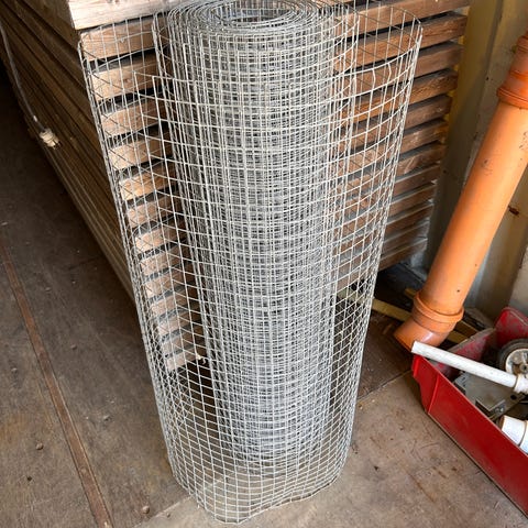 Netting på rull i galvanisert stål. Maskene er rutemønstrede, egnet til innhegning, gjerde eller avskjerming i hage og uteområde. Leveres som hele ruller slik som vist på bildene.