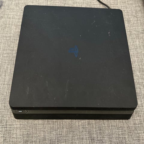 Selger min Sony Playstation 4 spillkonsoll i svart. Konsollen er beregnet for bruk med Playstation 4-spill og tilkobles TV eller skjerm via HDMI. Enheten har innebygde USB-porter for tilkobling av kontrollere og annet tilbehør. Egnet for både fysiske spillplater og digitalt nedlastet innhold, avhengig av modell og lagringskapasitet. Passer til bruk hjemme som underholdnings- og spillkonsoll for én eller flere brukere.