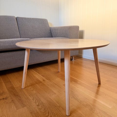 Kjøpt nytt på Fagmøbler. Har noen bruksskader i form av små riper i bordplaten og et par sorte prikker som var det når det ble kjøpt nytt (se bilde). Pent brukt.