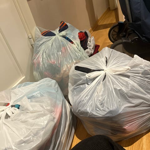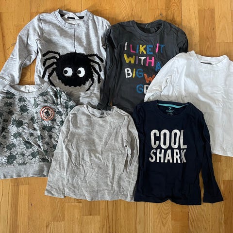 Pose med gensere og t-skjorter i str 98-104. Noe nesten ikke brukt, noe mer brukt.