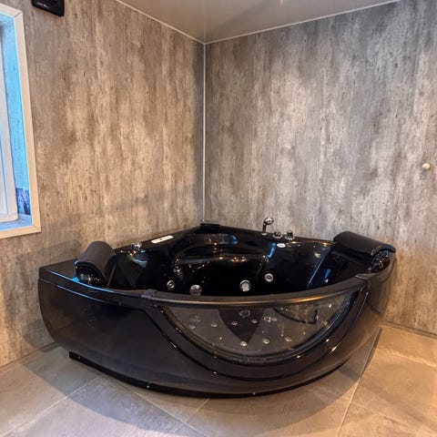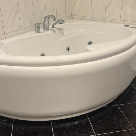 Pool Spa hjørnebadekar massasjebad i hvit utførelse. Badekaret er utformet som et hjørnekar med avrundet front og integrerte massasjedyser langs sidene og i bunnen. Det har innebygde betjeningsknapper på karkanten for styring av funksjoner. Egnet for innbygging i baderomshjørne der det er tilrettelagt for vann, avløp og strømtilkobling i henhold til gjeldende forskrifter.