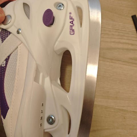 Risport kunstløpskøyter i størrelse 37 i hvit farge. Klassisk modell med snøring foran og støttende ankelparti. Skøytene har stålskinne beregnet for kunstløp, egnet for bruk på isbaner til trening eller fritidsbruk. Passer til brukere som trenger skøyter i skostørrelse 37.