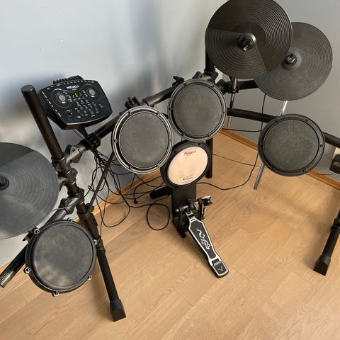 Millenium MPS-850 elektronisk basstrommepad i svart utførelse. Pad-en er beregnet for bruk som basstromme på elektroniske trommesett. Den har integrert stativ/kick-tårn og trommeskinn i mesh-lignende materiale for mer naturlig spillfølelse og redusert støy. Passer til elektroniske trommemoduler som støtter tilsvarende trigger-tilkobling. Egnet for øving hjemme, i øvingslokale eller studio der det er behov for elektronisk basstromme.