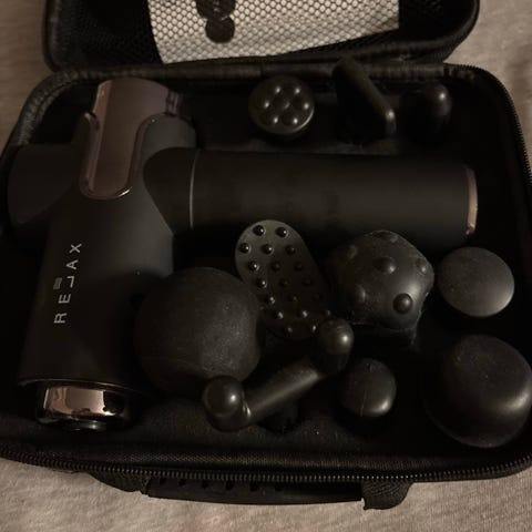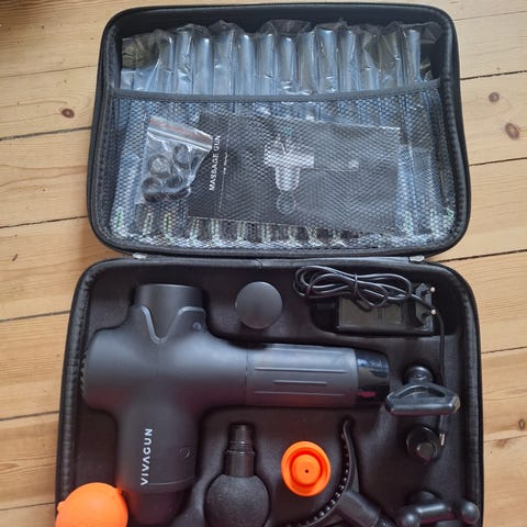 Trigger point massasjepistol med to batterier 5 hoder og oppbevaring koffert.