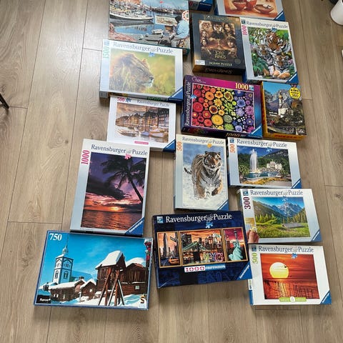 2) Ravensburger puslespill med landskap og luftballonger, 3000 brikker.