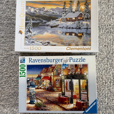 3) Puslespill med kystlandskap og fjell, 1000 brikker.