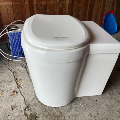 Hvit forbrenningstoalett i kompakt frittstående utførelse. Toalettet har lokk med sete og innvendig forbrenningskammer. Egnet for bruk på steder uten vanlig avløp, som hytte eller andre bygg med begrenset infrastruktur. Strømtilkobling er nødvendig for drift av forbrenningsfunksjonen. Ytre overflate er i glatt materiale som er lett å tørke av. Leveres som enhet uten synlig vanntilkobling i konstruksjonen.