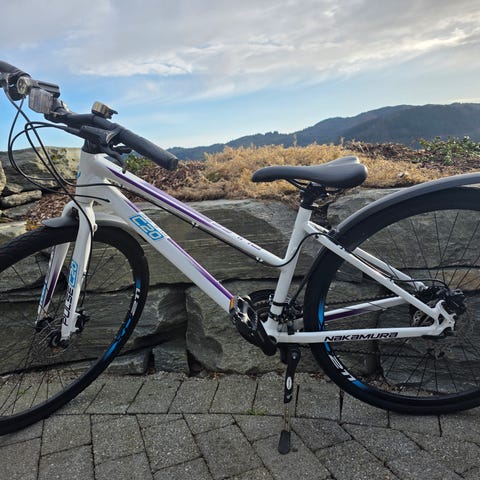 Sykkelen har shimano-gir, ramme med dempegaffel og hydrauliske skivebremser.